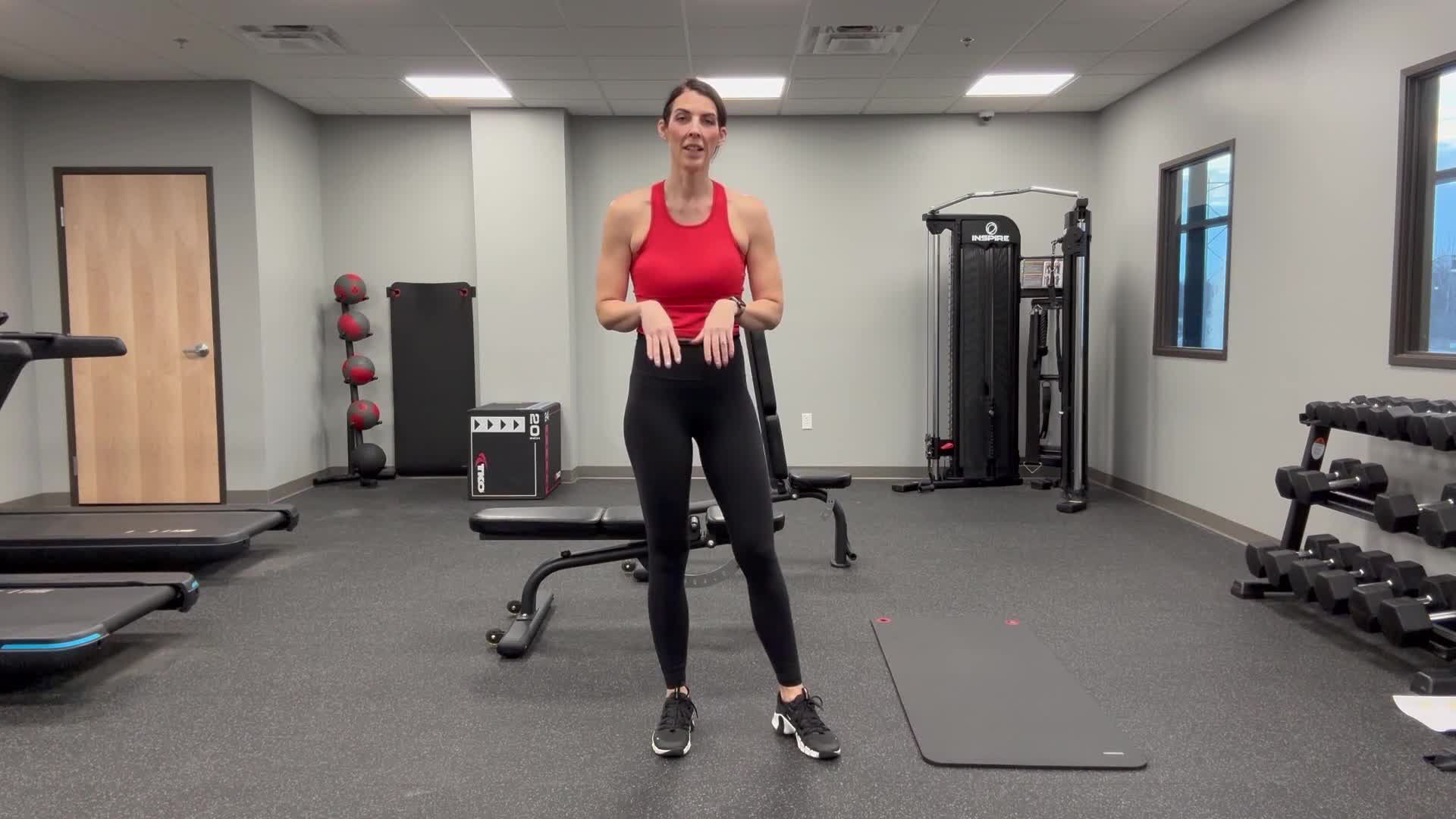Exercise Video Library Skip to Videos Cardio | Full Body | Core | Cool Down | Warm Up | Upper Body | Lower Body | Cardio, Full Body, • 2/11/25 Weighted Side to Side Squat & Side to Side Squat with Upright Row Core, Cardio, Full Body, • 2/11/25 Step Up with Knee Drive and Twist Core, Full Body, • 2/11/25 Static Lunge Hold with Lift and Chop Core, Full Body, • 2/11/25 Static Lunge Hold with Chest Press Core, Full Body, • 2/11/25 Static Lunge Hold with Shoulder Press Core, Full Body, • 2/11/25 Static Lunge Hold with Row Full Body, • 2/11/25 Squat with Press Full Body, • 2/11/25 Squat with Curl to Press Full Body, • 2/10/25 Reverse Lunge w/ Press Full Body, • 2/10/25 Romanian Deadlift to Upright Row Full Body, • 2/10/25 Romanian Deadlift to Row Core, Full Body, • 2/10/25 Plank to Downward Dog & Plank to Blast Off Core, Full Body, • 2/10/25 Half Burpee Core, Full Body, • 2/10/25 Glute Bridge w/ Chest Press Core, Full Body, • 11/16/21 Counter Squat Upper Body, Core, Full Body, • 11/16/21 Commando Full Body, • 11/16/21 Burpee Core, Full Body, • 10/18/21 Bear Crawl Core, Full Body, • 10/29/21 Alternating Lateral Lunge w/ Row